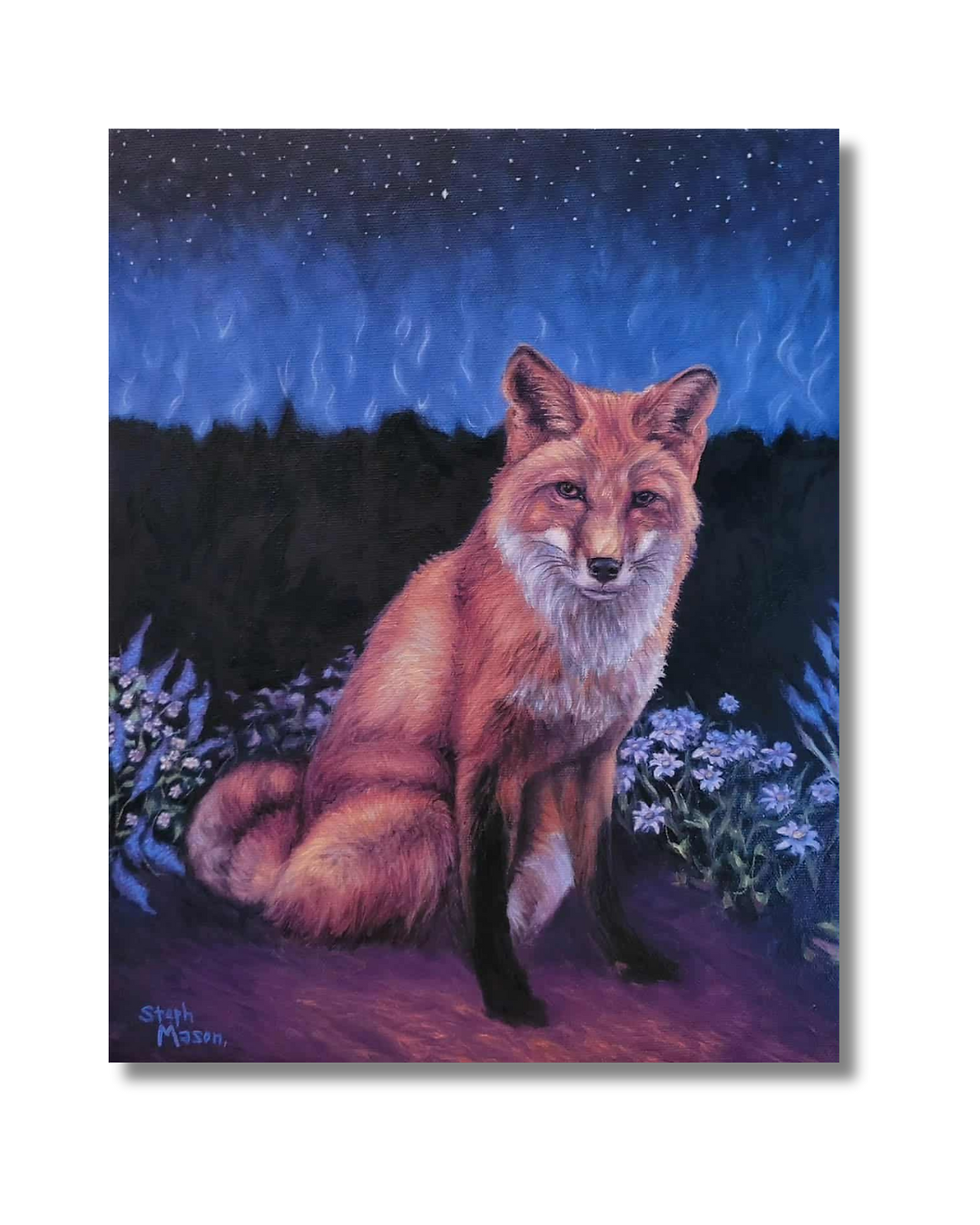 Steph Mason's paintings center around the creative use of colour to enhance the beauty and meaning of the subject depicted. While the image is created in a realistic way, there is a dream-like quality to the final result. Her landscapes are like a memory of a place - representing the restorative way being in nature feels. Steph grew up in Ontario and would go on yearly camping trips with her family. These trips instilled a love of nature and an appreciation of disconnecting from technology and listening to the environment around us.